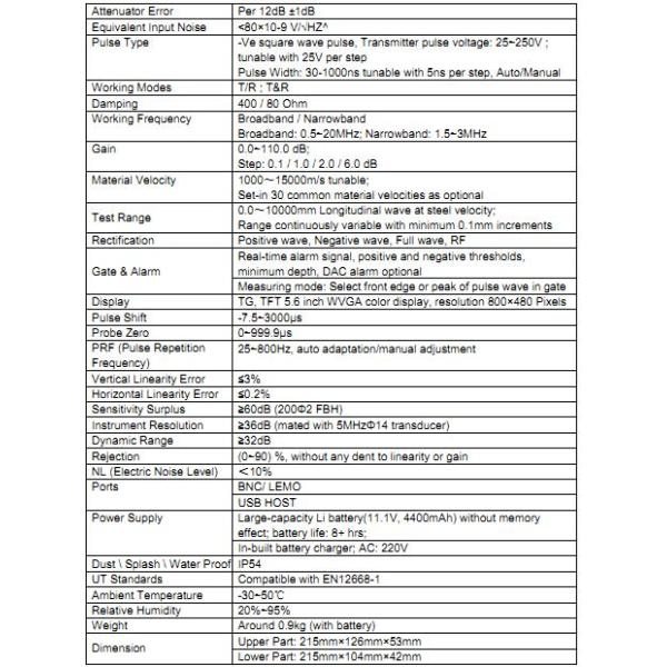 Compatible with EN12668-1:2010. This instrument is mounted with TG TFT display of full WVGA (800×480 pixels) resolution for excelling visibility even used outdoors or in strong sunlight. Another amazing feature of this product is the “square wave drive” which realizes the user’s dream for best sensitivity and resolution. Moreover, it’s compatible with EN12668-1:2010, the popular instrumentation standards widely recognized in European and even the international market. Weighing only 0.9kg, this apparatus enables the user to carry it just like an on-hand tool for instant inspection task. All these distinct advantages make it superior as compared to its counterparts.